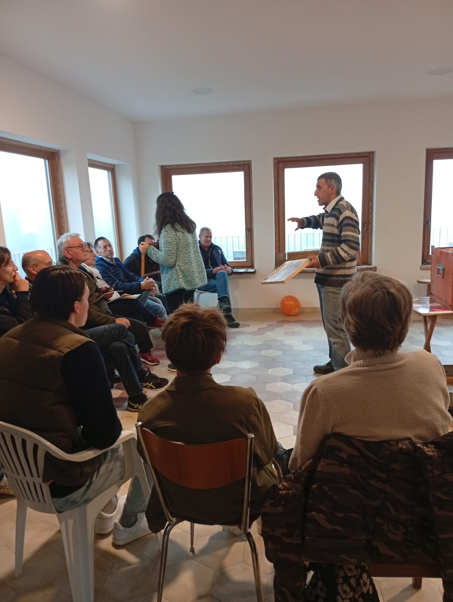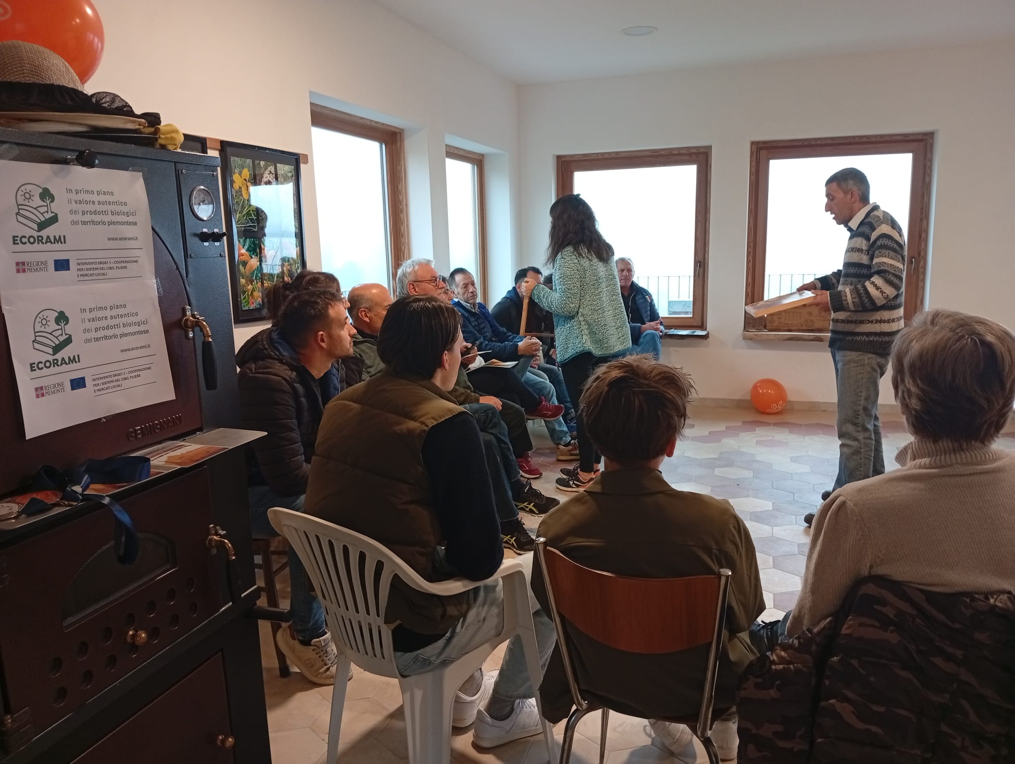 Il progetto Ecorami è stato avviato e sono iniziati gli incontri presso le aziende agricole biologiche aderenti alla rete. Io e Silvia di Azienda agricola Bogion cit abbiamo proposto nella mattinata di domenica 16 novembre un incontro da noi nel salone che usiamo anche come apiario didattico.