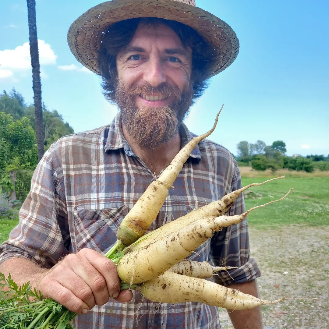 “La CSA, Comunità che Supporta l’Agricoltura, è uno strumento potente, secondo me – ci dice Federico Chierico dell’azienda agricola Il Chioso – perché toglie il cibo dall’economia estrattiva, cioè quella del profitto, e lo dà all’economia generativa, cioè quella che, oltre al profitto, mette in campo il tema della relazione, della felicità. Che cos’è una vera CSA? CSA sono delle famiglie che scelgono di sostenere un’azienda attraverso un abbonamento prepagato e un sostegno economico, è un sodalizio, e io in cambio di questo sodalizio gli do una cassetta settimanale di ciò che c’è. Quindi le famiglie sanno che gli arriveranno alcuni kg di verdura con una certa varietà di ortaggi diversi, ben bilanciati. Questa cosa qui è molto potente perché sul banco del sabato, io ho la roba sul banco che devo gestire, da pesare, da fare i prezzi, da stare attento, a non sbagliare niente. Tu che sei davanti al banco hai la tua lista della spesa e la tua roba da fare, oltre a me, e quindi di fatto il nostro scambio si riduce in “Io ti do la roba, tu mi dai i denari” e ci salutiamo. Invece la CSA è molto più potente perché quando tu vieni a ritirare la cassetta, i soldi me li hai già dati, la roba l’ho scelta io e di conseguenza quando vieni ti siedi e parliamo di noi. Magari stappiamo una bottiglia, magari facciamo quattro chiacchiere e incominciamo a dirci come ci chiamiamo, che lavoro facciamo e quindi dire magari c’è l’educatore che inizia a dirti: ma perché non scriviamo un bando insieme? Oppure l’altro che ti dice: ma vuoi fare il frutteto? Ma io conosco un po’ il mondo del crowdfunding, se vuoi ti aiuto io. E quindi di fatto noi il crowdfunding l’abbiamo fatto grazie ai membri della CSA che ci hanno detto: “Ti aiutiamo, ti aiutiamo a fare i testi, ti aiutiamo a fare le foto. Io ho un amico che fa i video e te li faccio fare da lui. È ipergenerativo, capisci? Questa secondo me è la forza vera che può superare quello che vogliamo fare un po’ noi, non competere, però confrontarci con la grande distribuzione organizzata. Noi non possiamo confrontarci attraverso la logistica, è impossibile, o attraverso il servizio. Infatti io dico sempre che il nostro non è un servizio, ma un sodalizio. Finisce sempre alla stessa maniera ma è completamente diverso. Noi, come dire, competiamo con la grande distribuzione sulla relazione che di là non esiste, anzi, è una relazione tossica, se vogliamo essere un po’ contestatori. Invece qui è tutto fondato sulla relazione e questo secondo me è la chiave di volta per il cambiamento. Se noi vogliamo provare a giocare a cambiare il sistema alimentare dobbiamo puntare alla relazione e non né scimmiottare la grande distribuzione né inventarci ci sa quali magie, ma semplicemente costruire gruppi di persone che si vogliono bene, che hanno piacere di stare in un ambiente bello, che sono le nostre cascine, che proprio perché siamo là col pensiero, i nostri luoghi sono belli, primo per noi stessi, perché ci lavoriamo tutti i giorni 8, 10, 15 ore al giorno, e poi per chi questo luogo lo condivide. La mia cascina non assomiglia a un capannone dove fanno tubi, come la maggior parte delle aziende come dire, dell’agroindustria. Questo è un grande punto a favore. Chi viene da me, ci sono le oche libere, le galline, cani, gatti, è un posto bello. Bello perché ci mettiamo l’anima per tenerlo bello. Non è che non è rasato, non ci sono gente sottopagata che taglia l’erba 10 volte alla settimana, perché deve essere tutto fighetto per poter vendere un calice a 7 € al calice, non lo facciamo e non ci interessa farlo, ma è un luogo bello. Questa bellezza e questa relazione è vincente, è la strategia per superare il modello devastante di alimentare che abbiamo adesso, con cui ci confrontiamo. Le famiglie che compongono la CSA sono circa 50. Attaccato alla nostra cascina c’era un meleto mezzo abbandonato, l’abbiamo preso in gestione, l’abbiamo potato e ha prodotto tantissimo quest’anno. Una parte le vendiamo fresche e l’altra parte l’abbiamo trasformata in succo, insomma. Noi abbiamo preso nove ettari in affitto per 30 anni, dopodiché il nostro progetto è un progetto che va per step molto tranquilli, perché non abbiamo macchinari, siamo un po’ tutto manuale, quindi non abbiamo neanche la possibilità di fare grandi investimenti, nemmanco li vogliamo fare. Quindi ad oggi noi coltiviamo 5000 metri di orti e abbiamo fatto 3000 metri di frutteto, abbiamo circa 25 – 30 galline e 8 pecore che ci passano il frutteto. Noi non siamo una famiglia perché mia moglie è maestra, ma siamo io e due ragazzi.